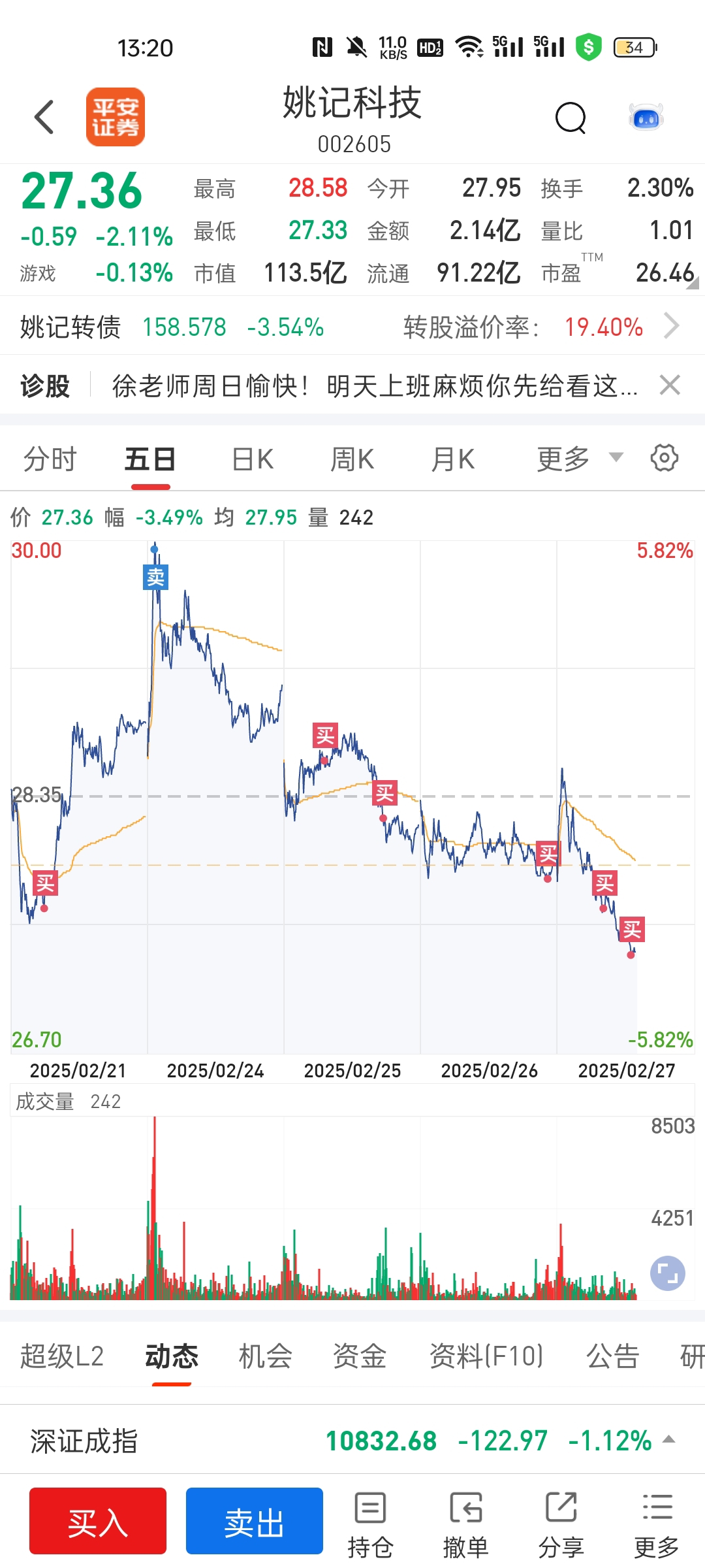 $姚记科技(SZ002605)$ 后悔早上没走本来还盈利的,现在要让我把前几天的吐出来