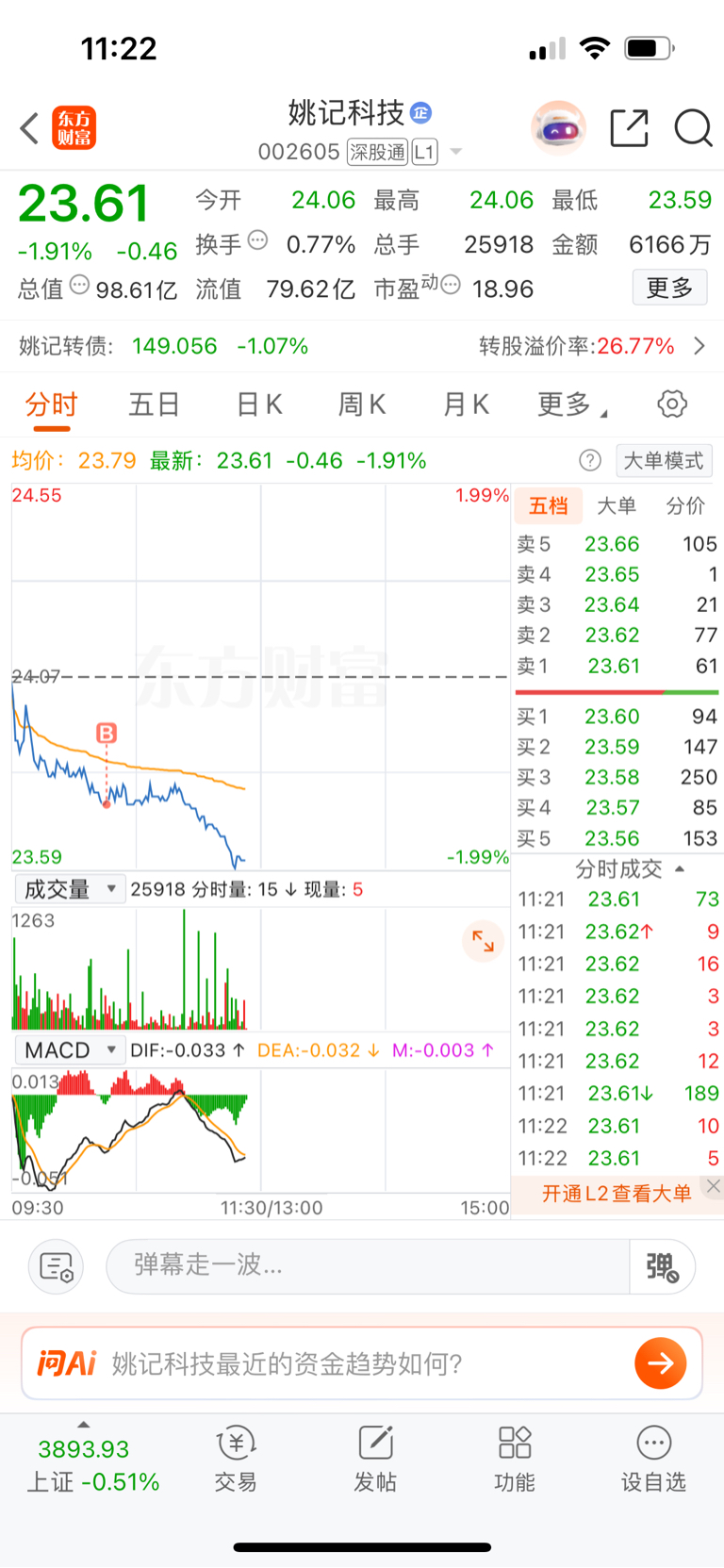 $姚记科技(SZ002605)$ 这周没戏了,23.75加仓,又套住了……