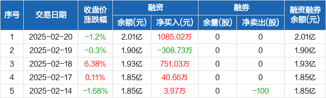 大连电瓷:融资净买入1085.02万元,融资余额2.01亿元(02-20)
