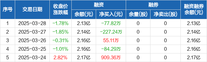 大连电瓷:融资净偿还77.82万元,融资余额2.13亿元(03-28)