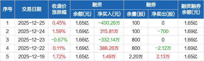 大连电瓷:融资净偿还400.26万元,融资余额1.65亿元(12-25)