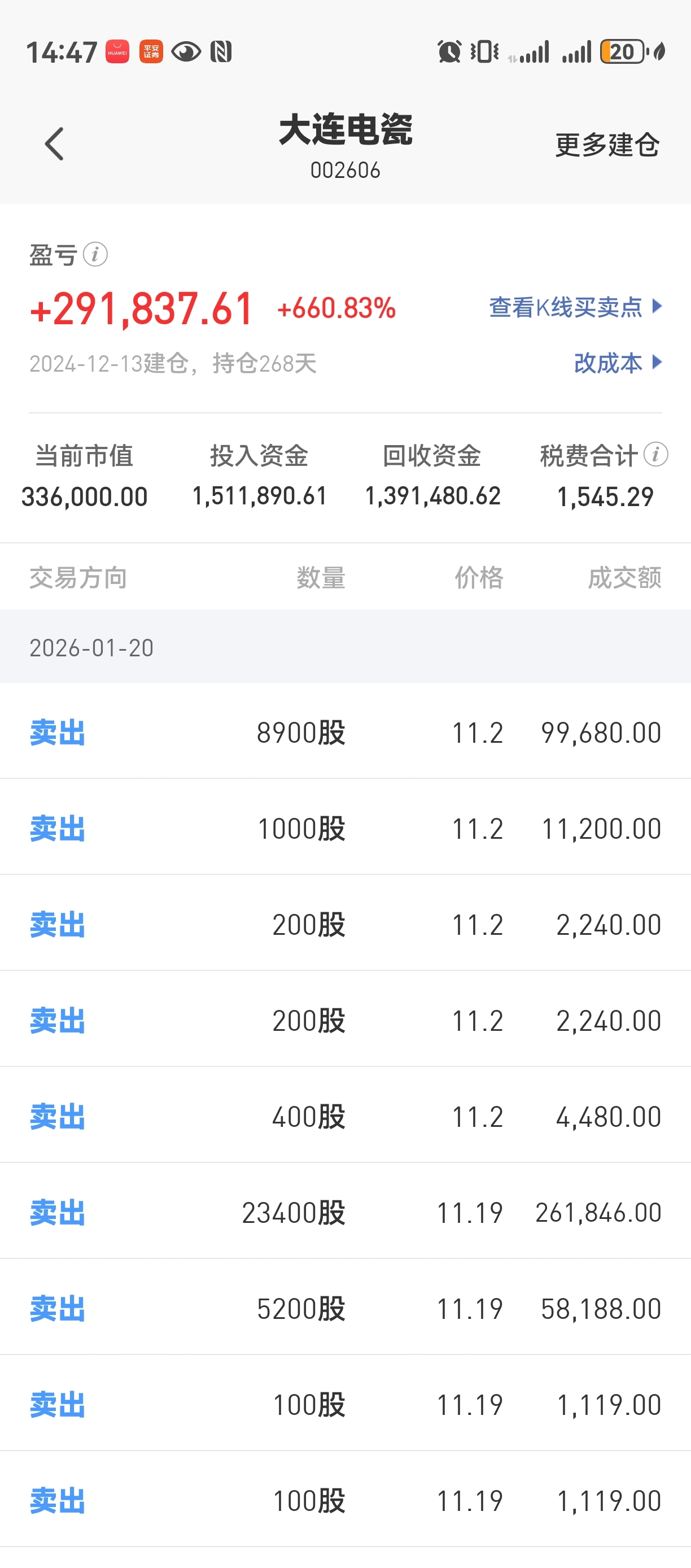 $大连电瓷(SZ002606)$ 卖了1000手,留了300手,感谢