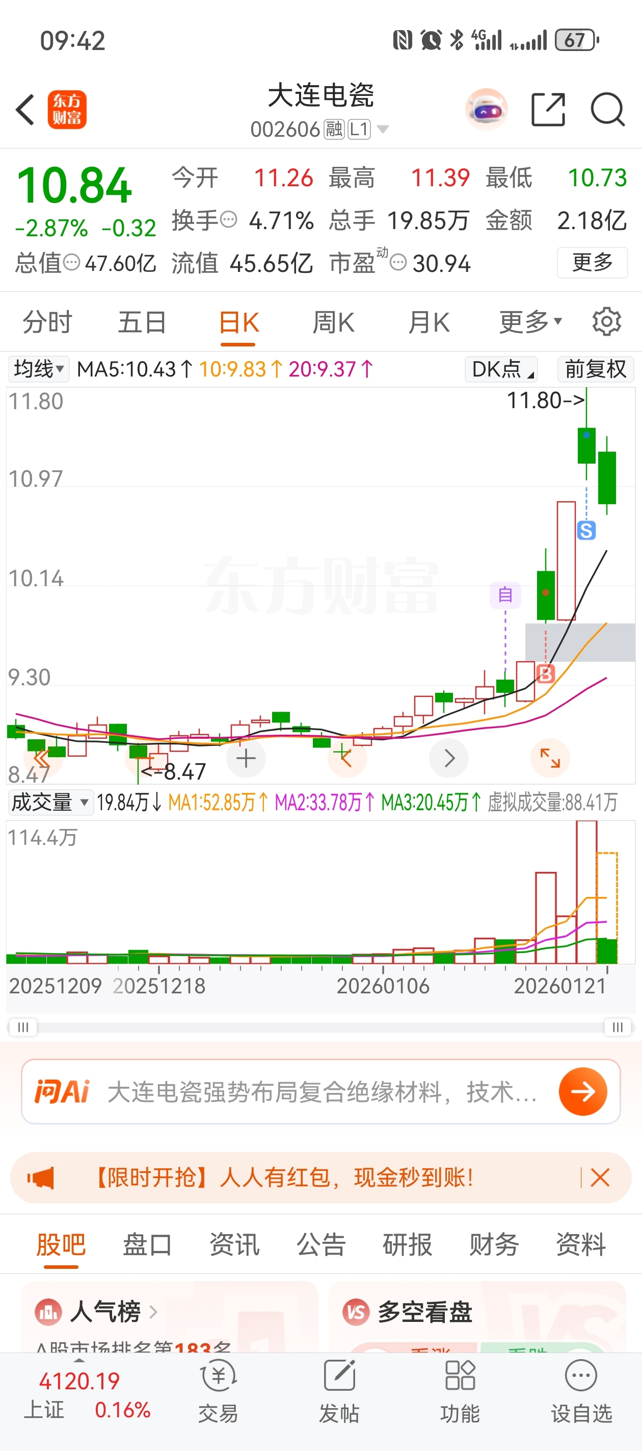 $大连电瓷(SZ002606)$ 搞了一点,跑路