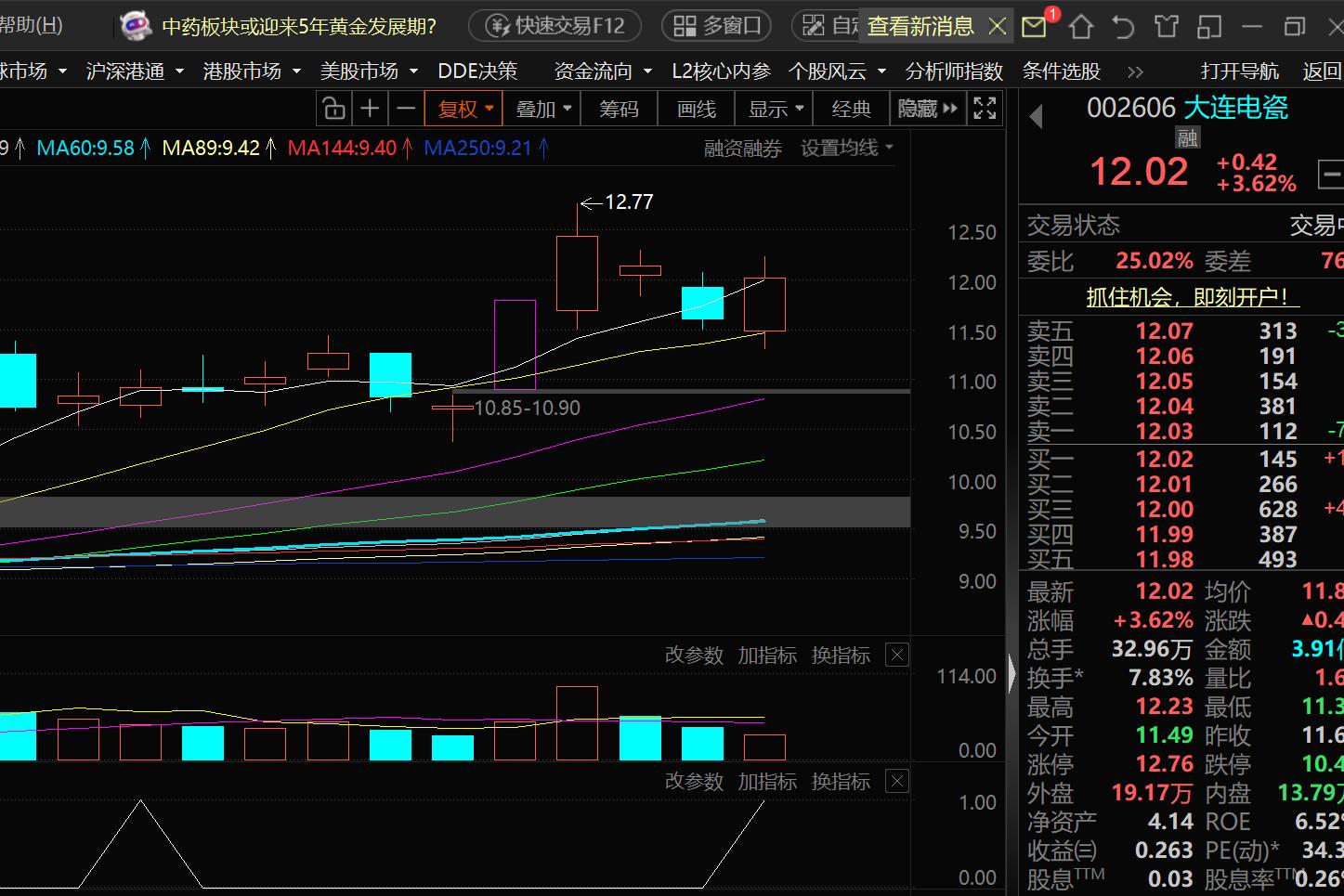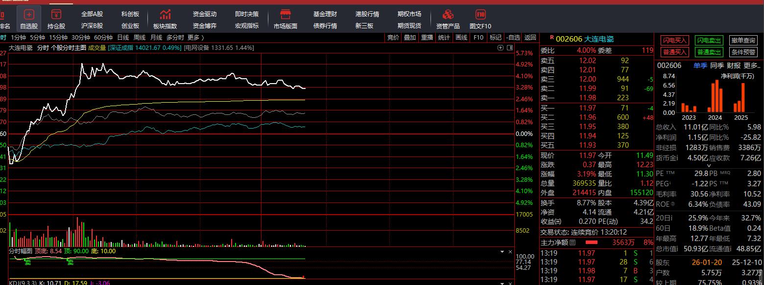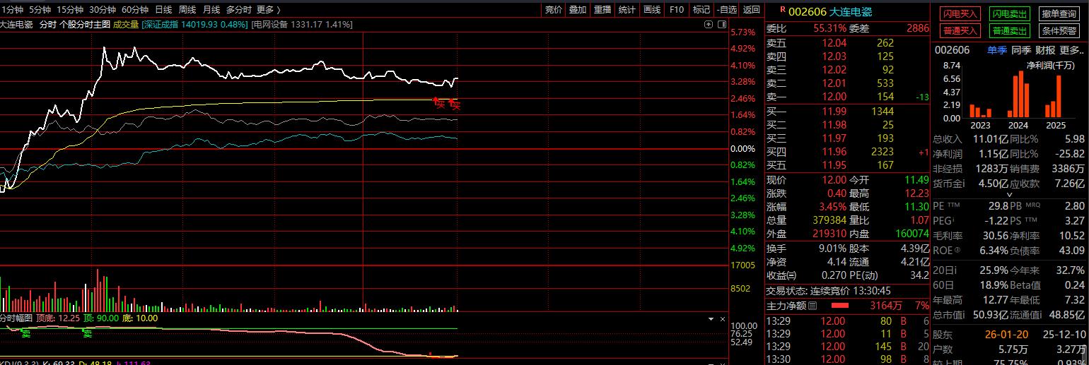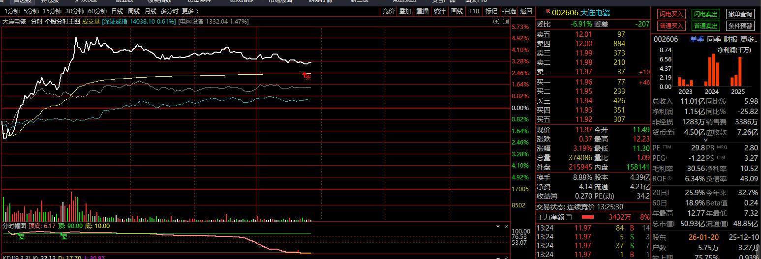 大连电瓷下午出低吸信号11.95附近
