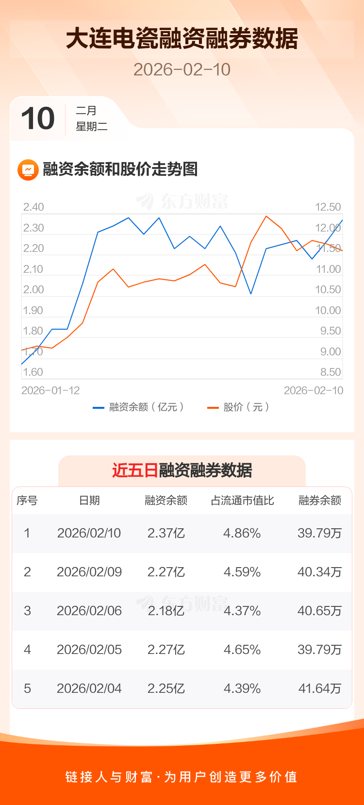 交易所最新数据显示,大连电瓷于2026年2月10日获融资买入3453.62万元,融资偿还2454.63万元,当日融资净买入998.99万元。目前,该股融资余额2.37亿,占流通市值比例为4.86%。