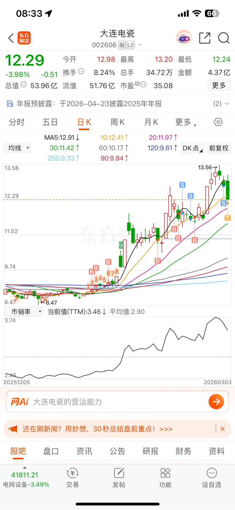 $大连电瓷(SZ002606)$ 不确定因素太多,感觉还要回调,哎,翻红再减仓1/2。。
