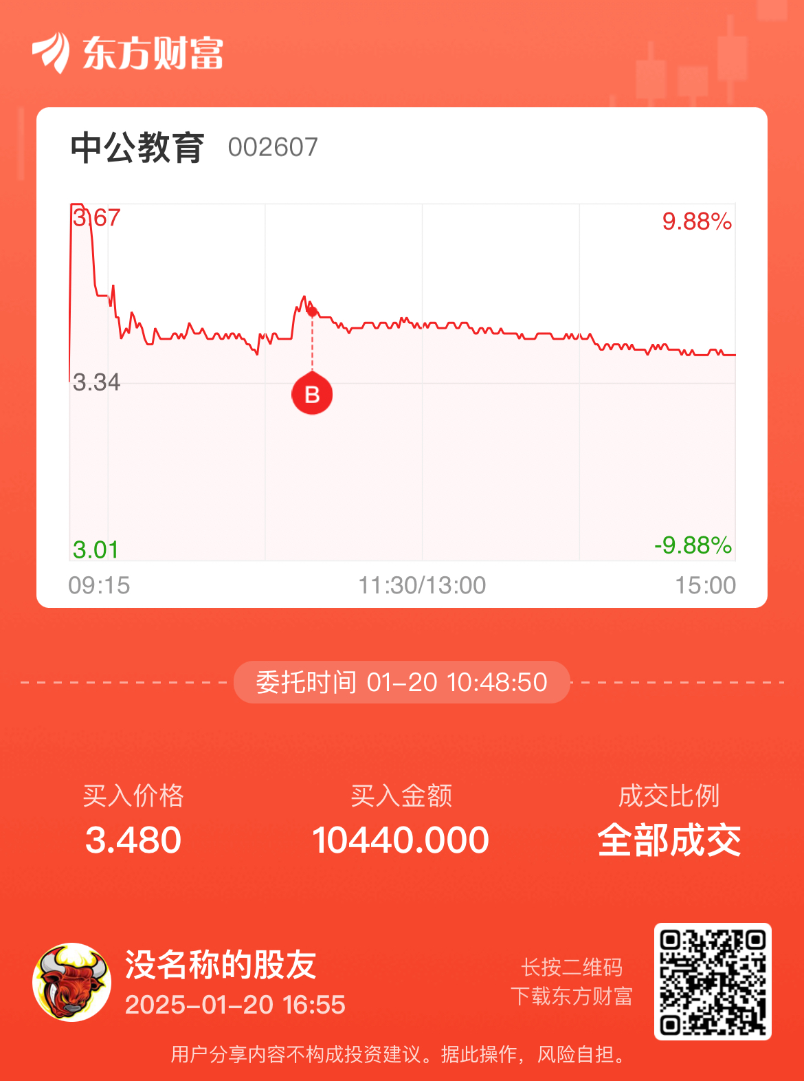 温馨提示: 1.根据《证券法》规定,禁止编造、传播虚假信息或者误导性信息,扰乱证券市场;2.用户在本社区发表的所有资料、言论等仅代表个人观点,与本网站立场无关,不对您构成任何投资建议。用户应基于自己的独立判断,自行决定证券投资并承担相应风险。《东方财富社区管理规定》
