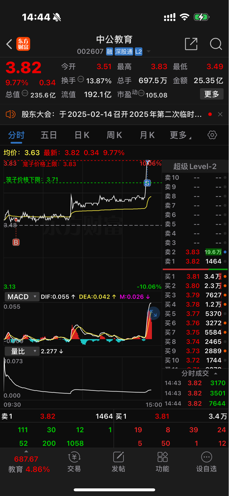 $中公教育(SZ002607)$ 每天做个 T,爽歪歪,封不住明天就危险