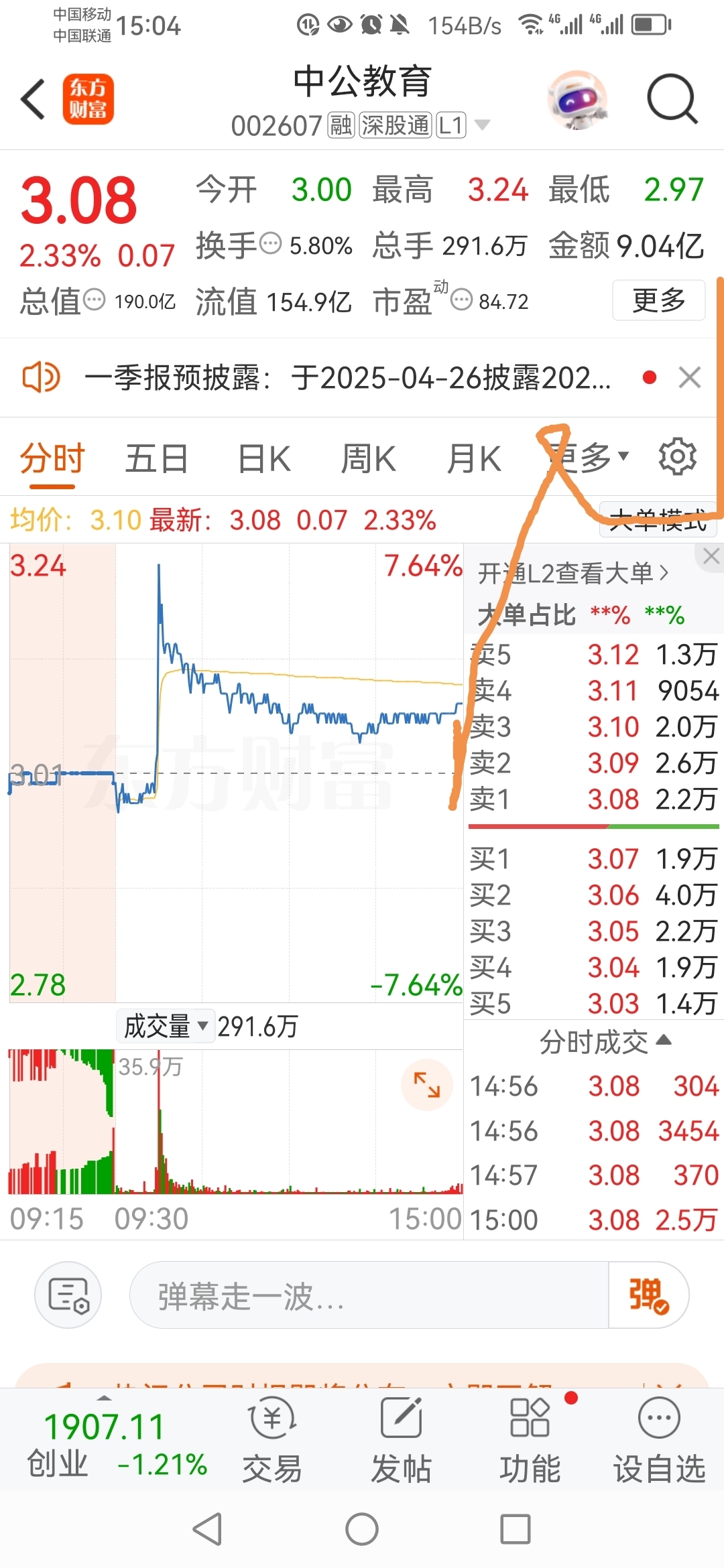 $中公教育(SZ002607)$ 明显是仙人指路!明天走势