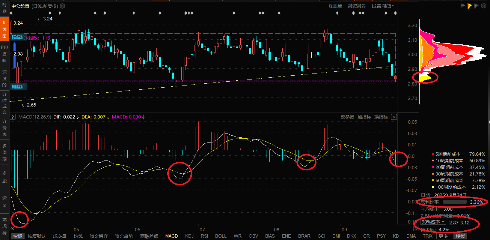 250日线支撑线破位下行,获利比例已低于10%,表明主力舍浮盈也要挖一个坑了。