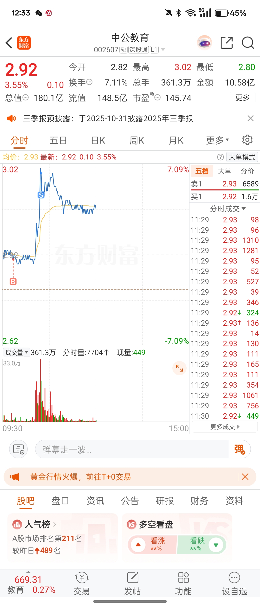 $中公教育(SZ002607)$ 看到异动量出来,觉得你不想涨停,顺势而为,及时止盈