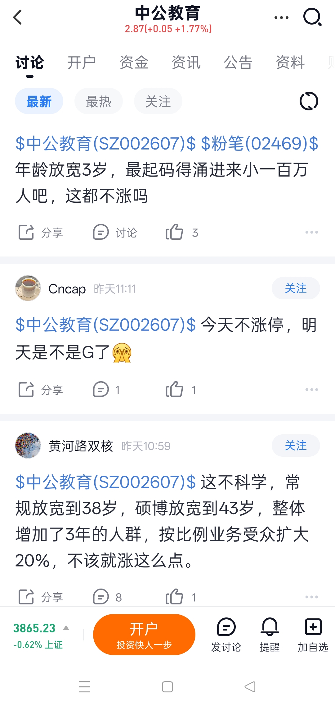 股价低位的时候当定投,3块以下的中公教育 就像3块多的豫光金铅$豫光金铅(SH600531)$ ,年龄放开,每个已上岸或准备上岸的买一万股,股价都会飞起来,上岸和学费双向奔赴,$昂立教育(SH600661)$ 何乐不为?$翔鹭钨业(SZ002842)$ @股海苗哥_留一手 @庚金生身 @西域子緐 别人恐慌时候我们该做什么?
