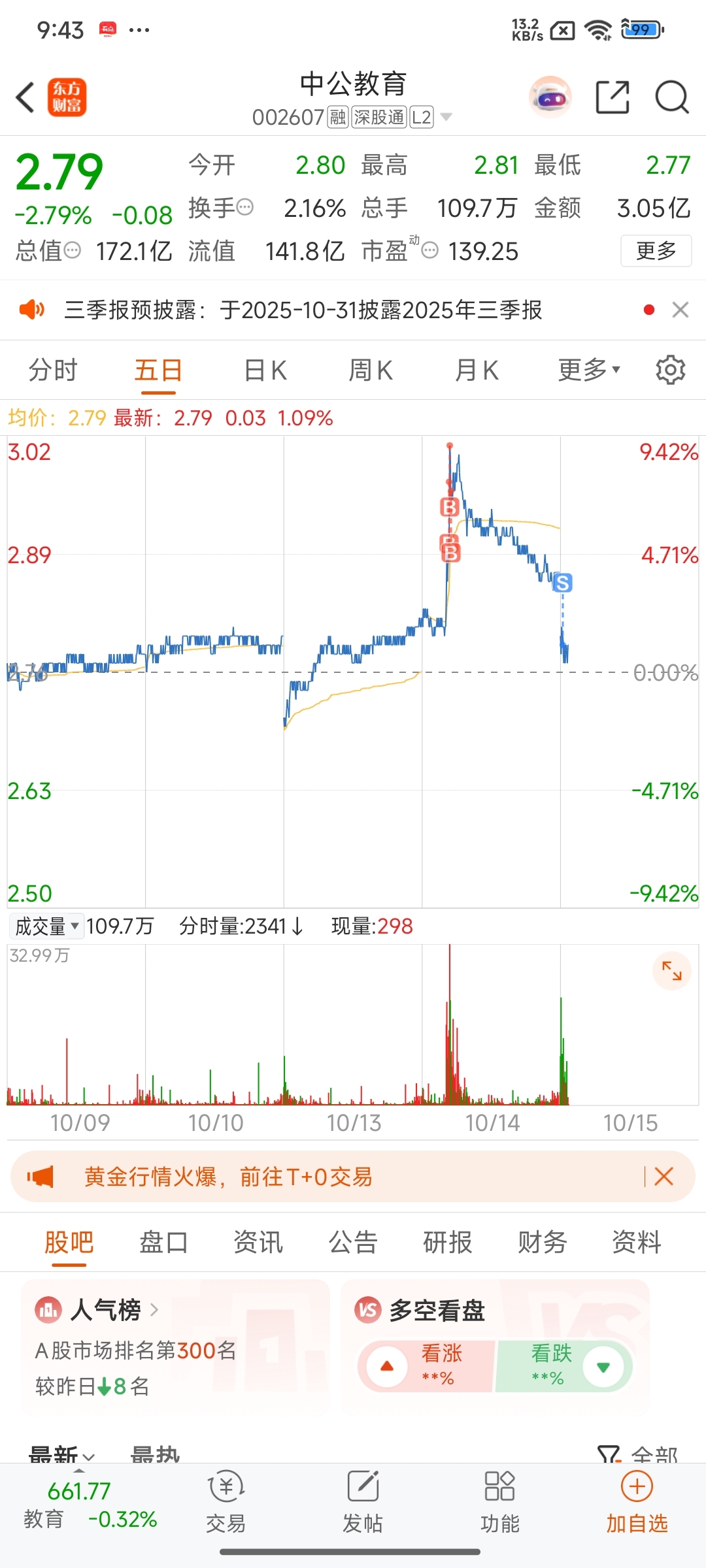 $中公教育(SZ002607)$ 山顶买,山底卖