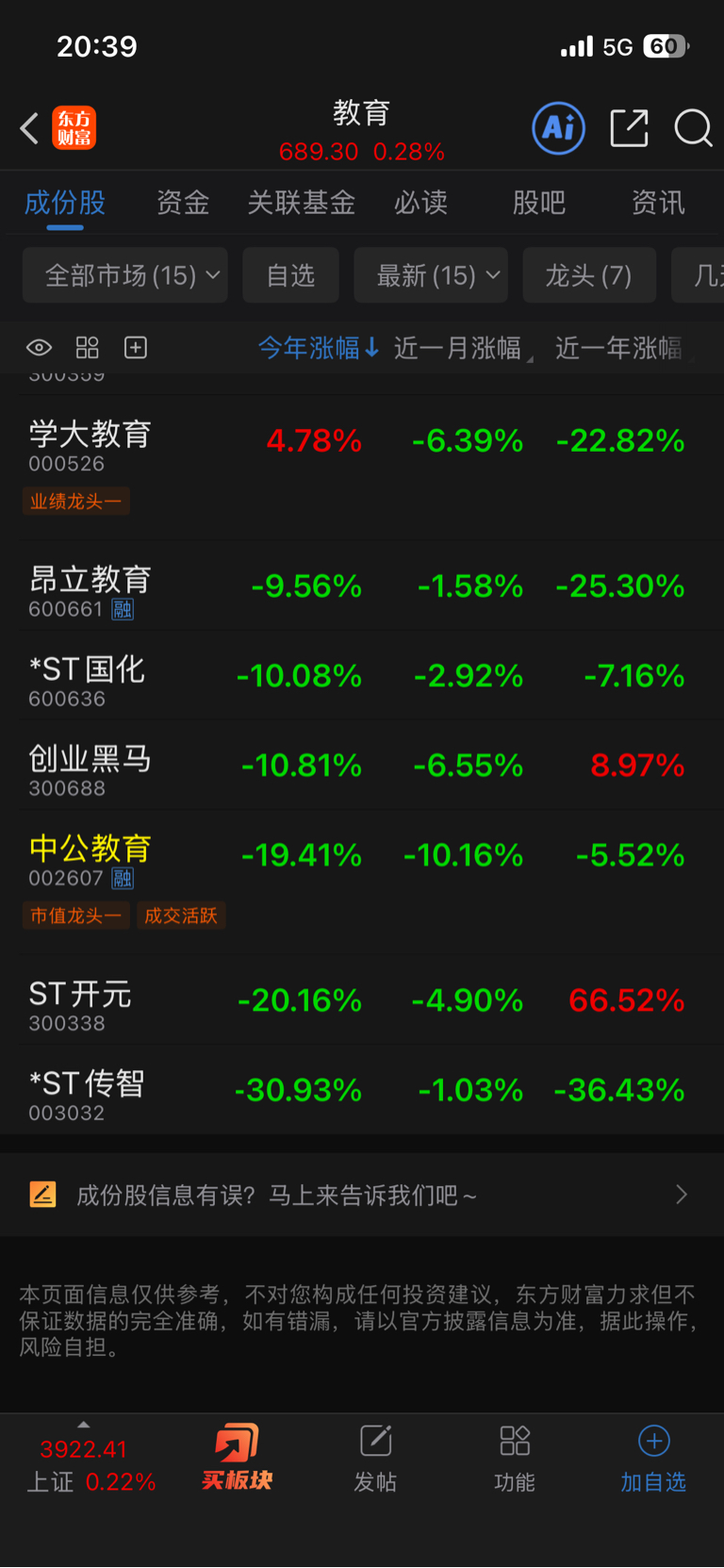$中公教育(SZ002607)$ 今年跌幅第三,离着st中公不远了!