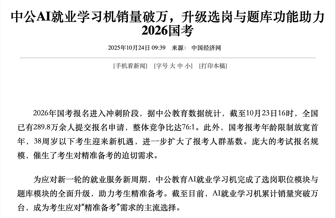 听说AI学习机销量破万。看来中公从传统培训转到就业还算成功,销量破万就是转型见效