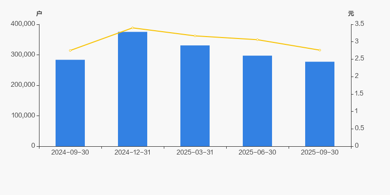 自2024年12月31日以来,公司股东户数连续3期下降,截至目前减幅为26.11%。2024年12月31日至2025年9月30日区间股价下降18.82%。