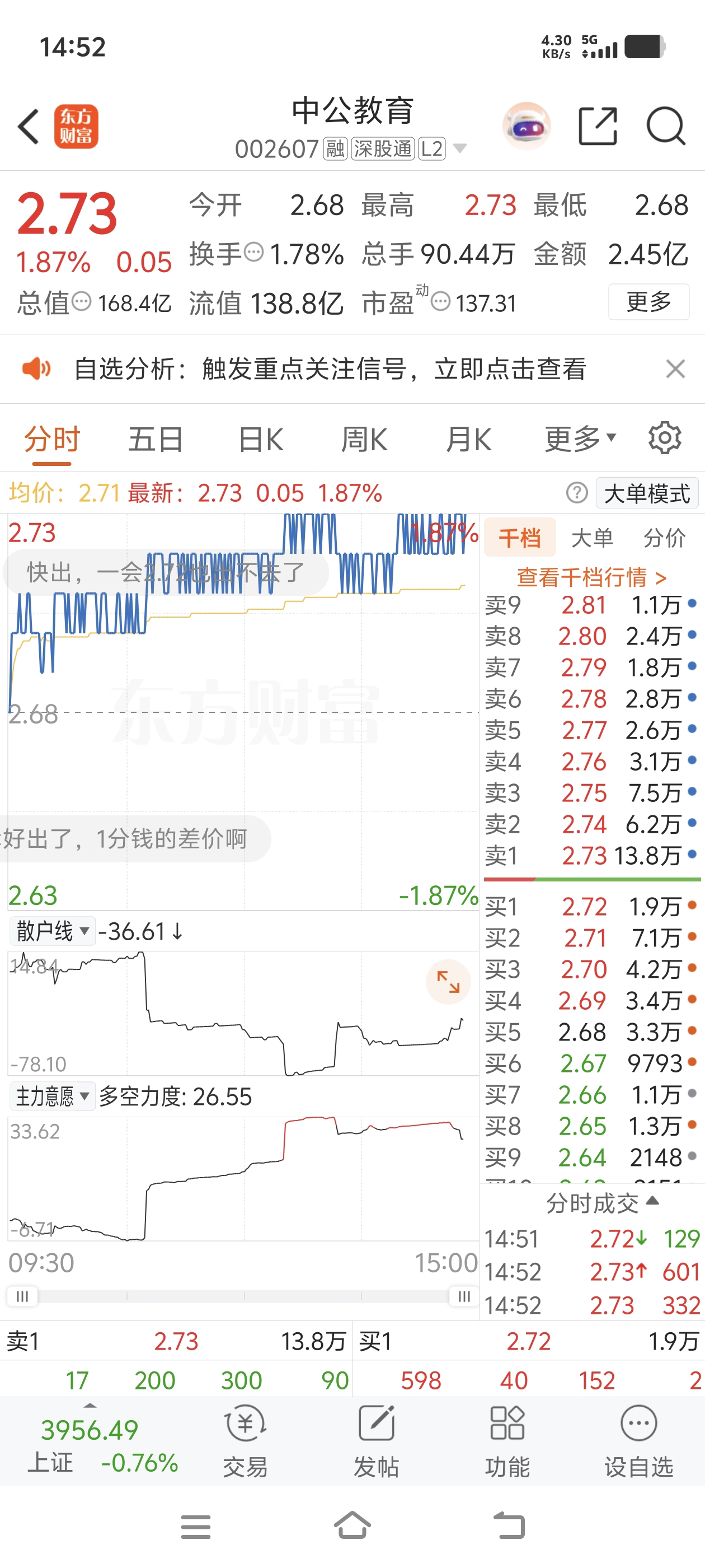 $中公教育(SZ002607)$ 居然还有人在使用尾盘买入法,我先走,星期一掉了再进,主力,散户,两条线不知道有没有人能看懂。