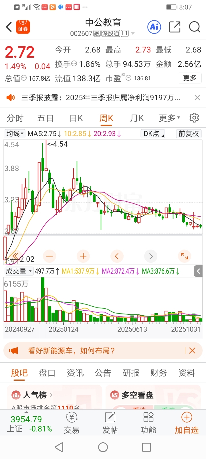 $中公教育(SZ002607)$