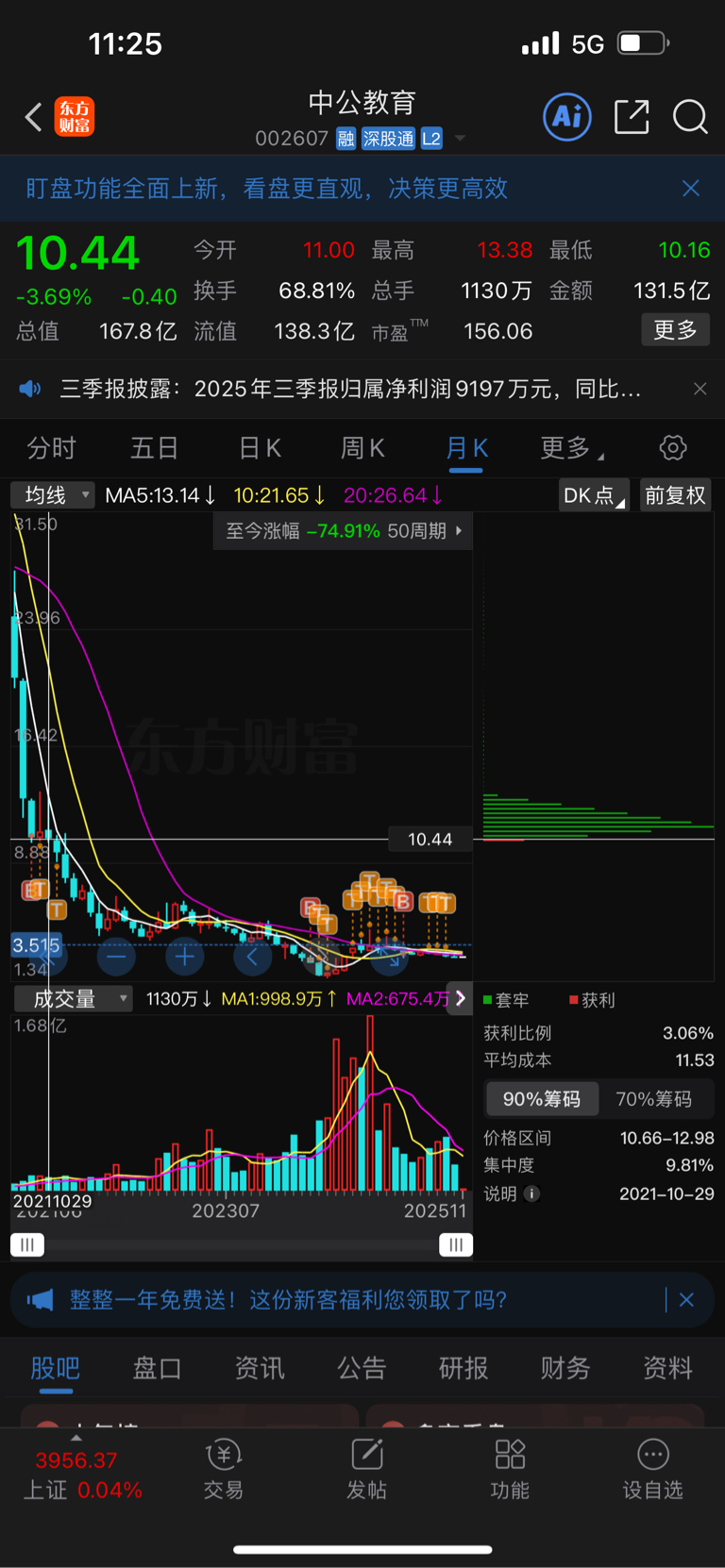 $中公教育(SZ002607)$ 10.5买入到现在,亏成狗了,根本就没有希望,每个月给你亏个5-6个点一直磨平你的意志,让你变得麻木都感觉不到跌的痛感了,我现在就是这种状态,