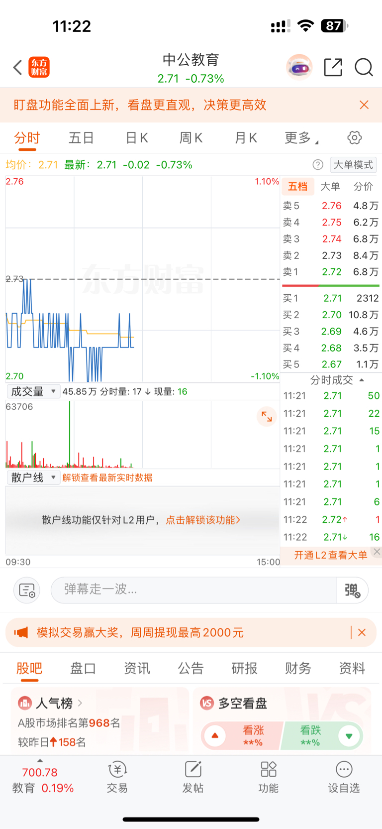 $中公教育(SZ002607)$ 一手的买单卖单。。。中公里面的散户得有多散