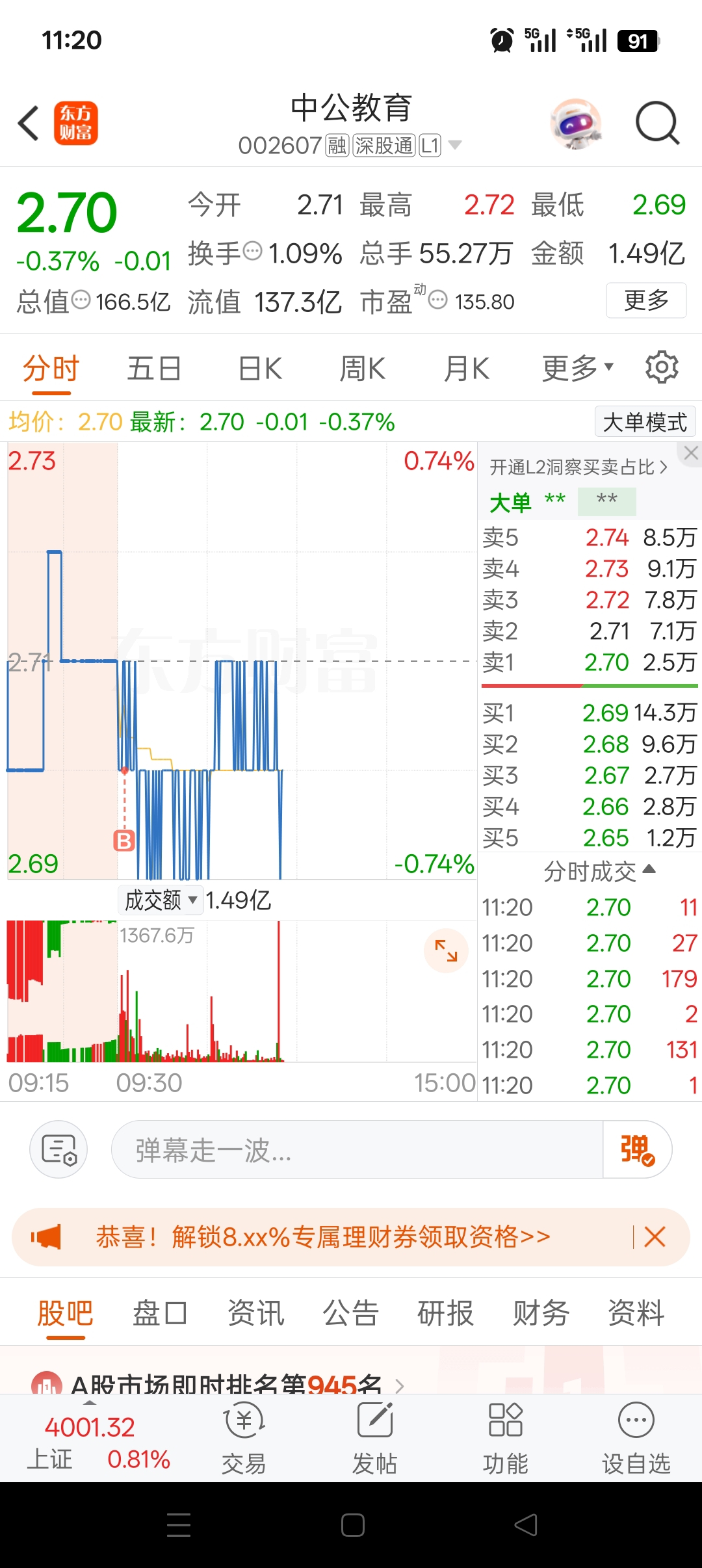 $中公教育(SZ002607)$ 卖单4.7w为什么是红柱子