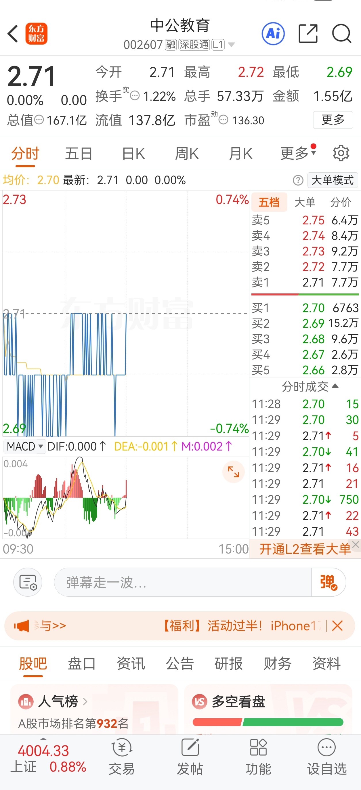 $中公教育(SZ002607)$ 每天都在完美操控,压单太明显