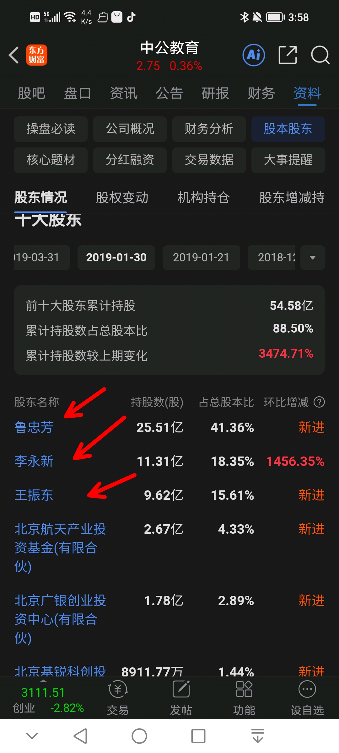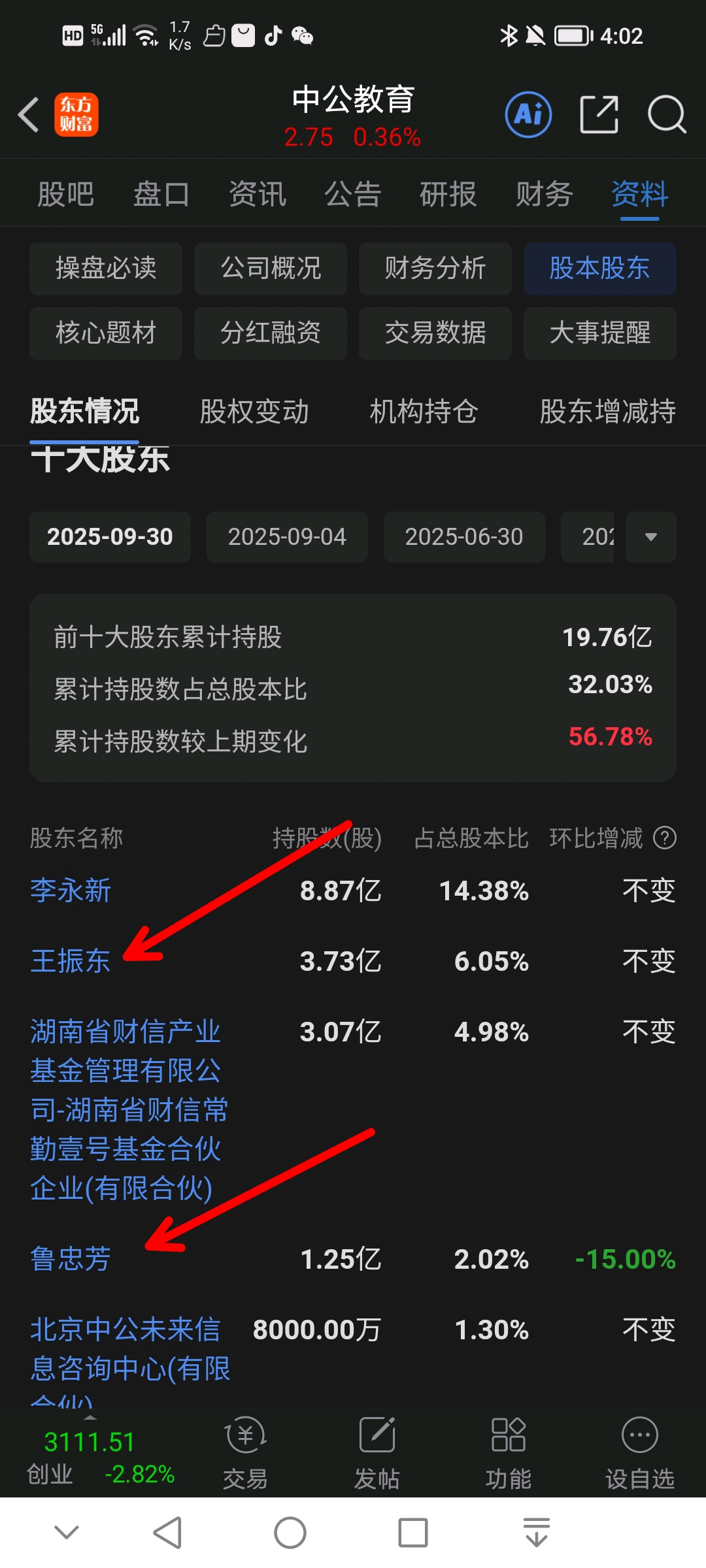 $中公教育(SZ002607)$ 中公教育大股东主要股东很有钱,把股份基本上卖了,
