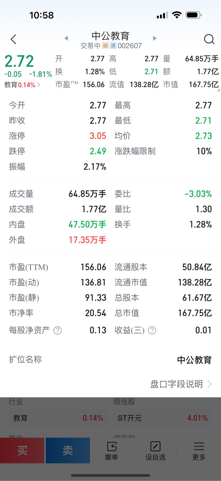 $中公教育(SZ002607)$ 啊!多了30万手卖盘