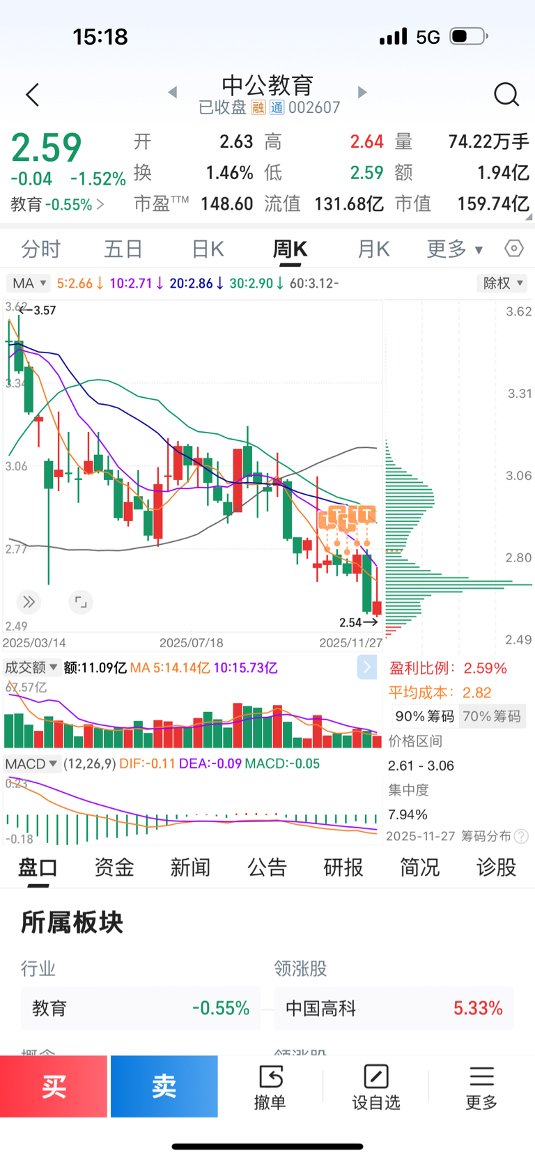$中公教育(SZ002607)$ 按照周线来看,下礼拜进场是最佳选择,明天要是打到252可以建底仓!下礼拜会来一个金针探底!