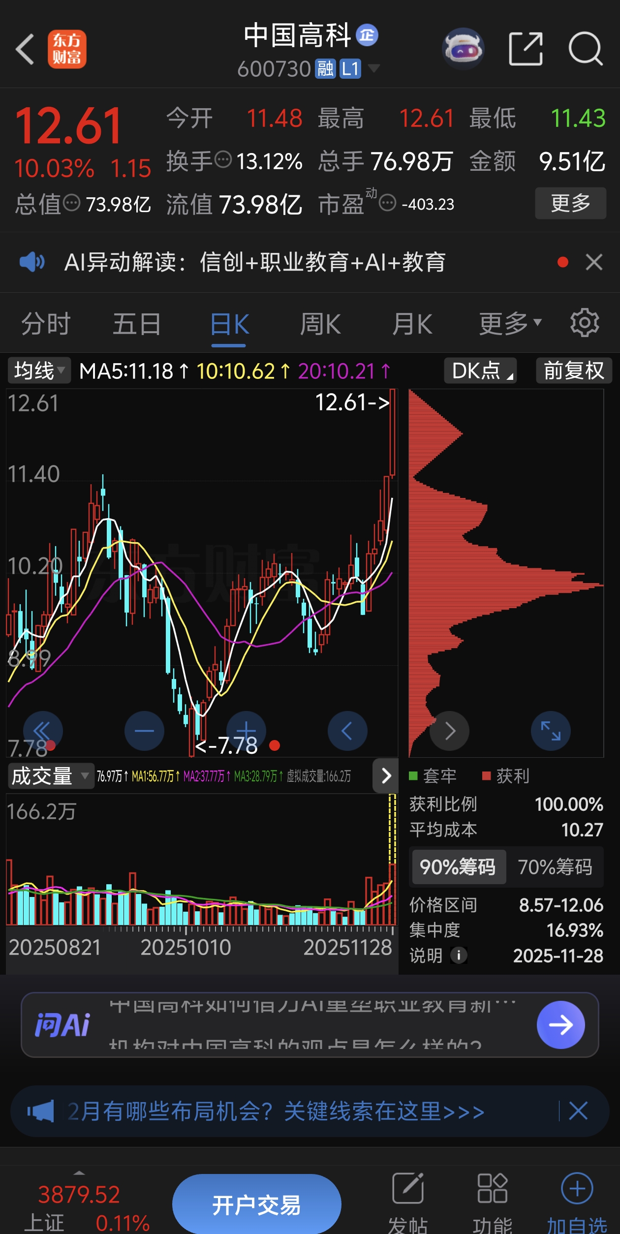 $中公教育(SZ002607)$ 中国高科带动教育etf异动拉升