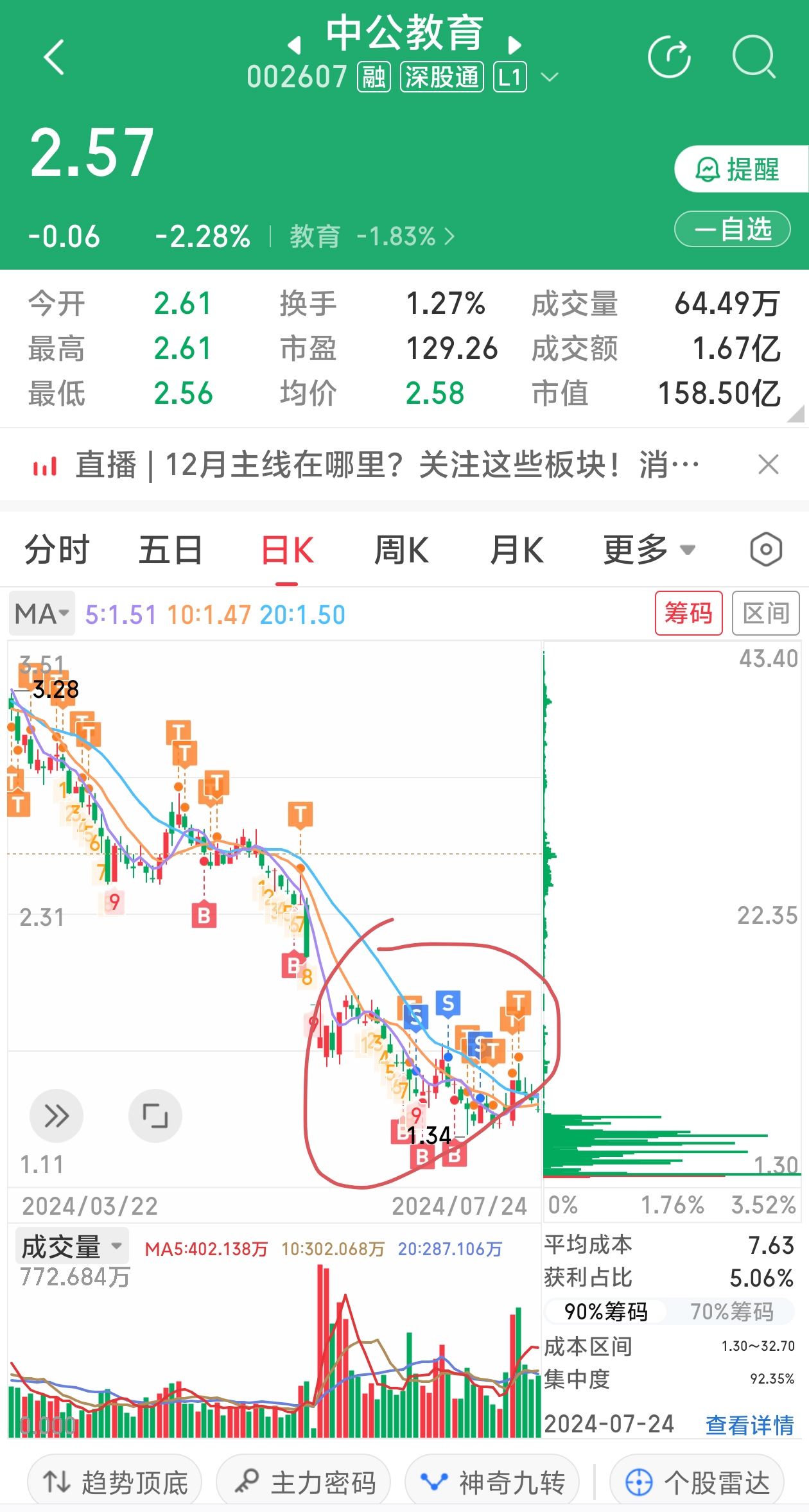 中公的无耻我是有深刻的领悟的。。。完全没有底线的下跌。就是要逼迫你们割肉。不割??没关系,给你跌到1块多都准备退市去了。就问你们怕不怕吧