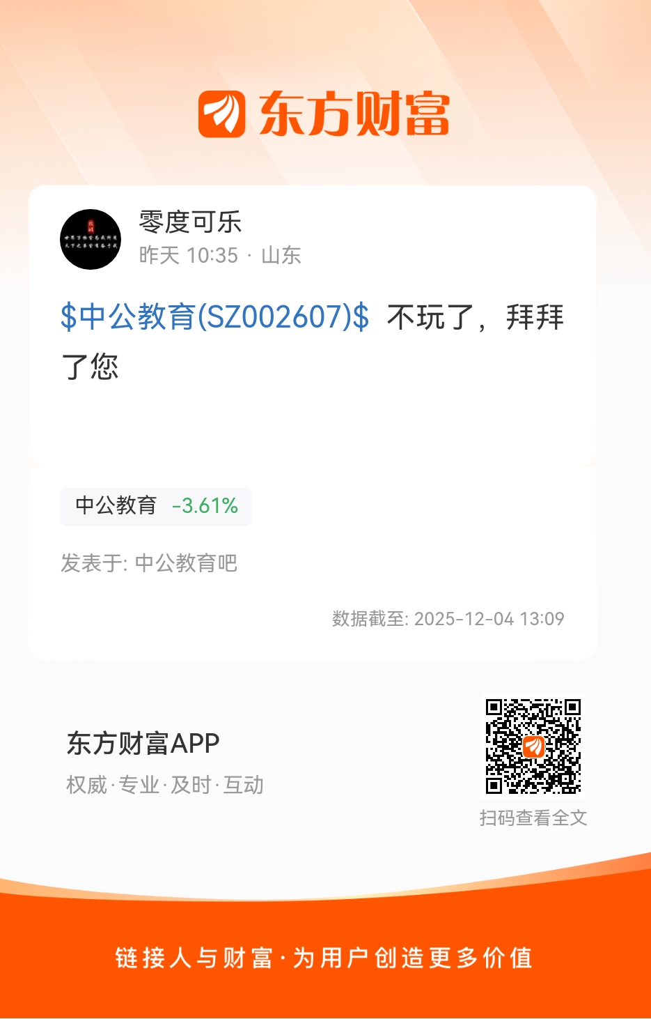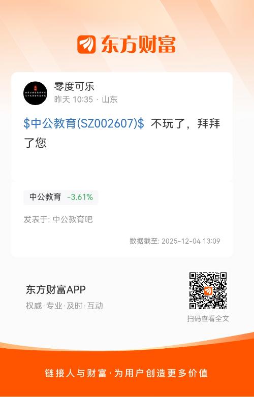 $中公教育(SZ002607)$  不玩了,拜拜了您