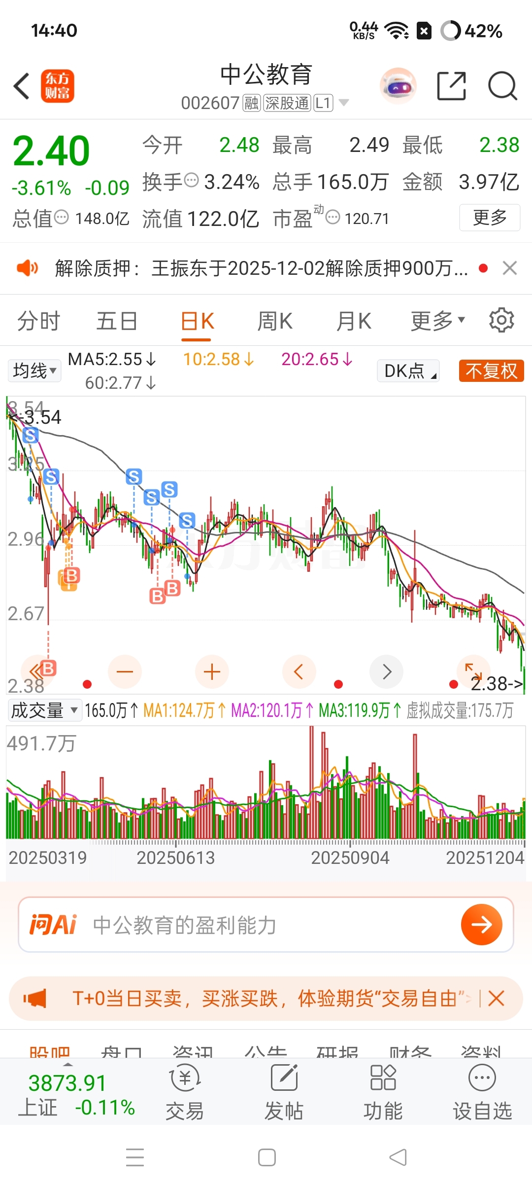 $中公教育(SZ002607)$ 我这也算是及时止损了,这里面的人要绝望了吧!从赚二十几个点一万多没走,现在亏七八千
