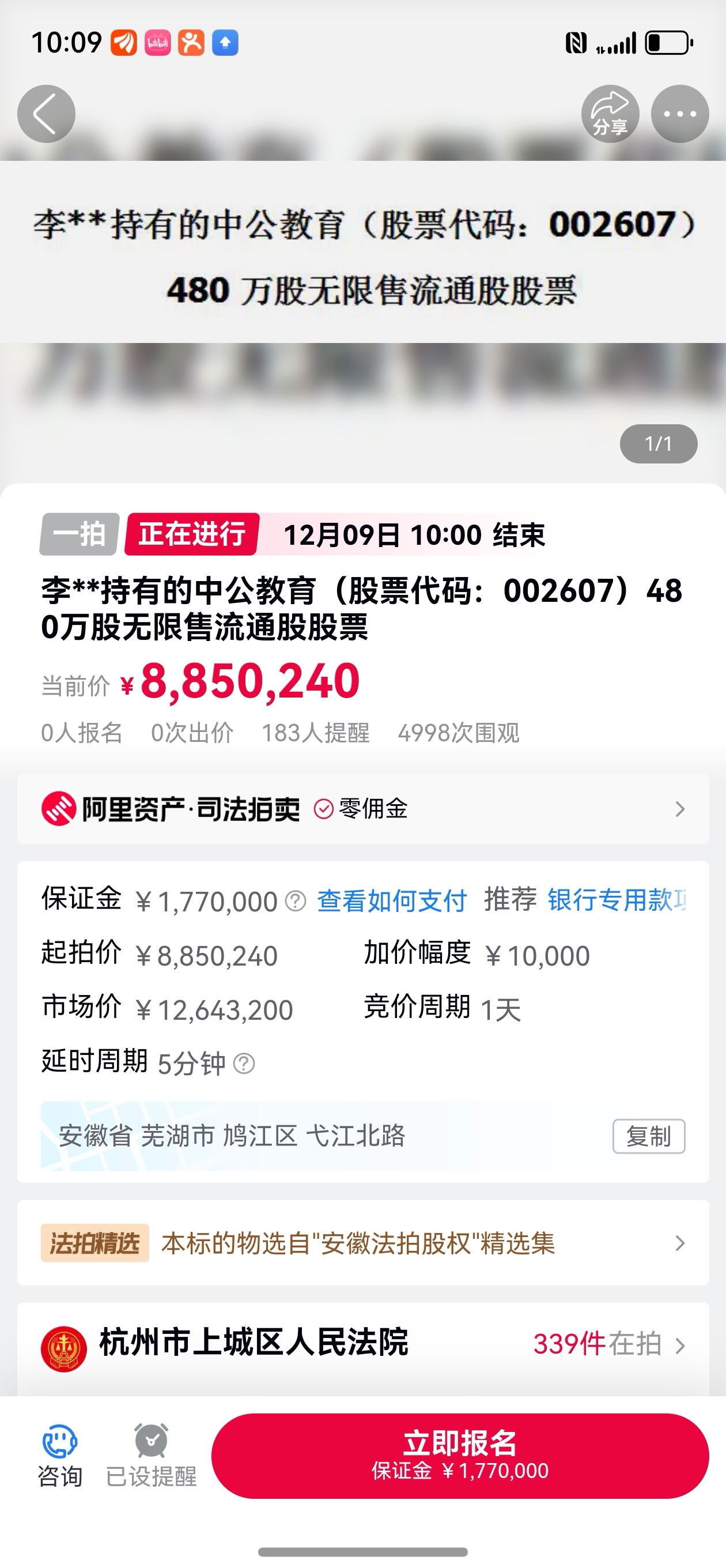 $中公教育(SZ002607)$ 没人出价呀 要二拍了