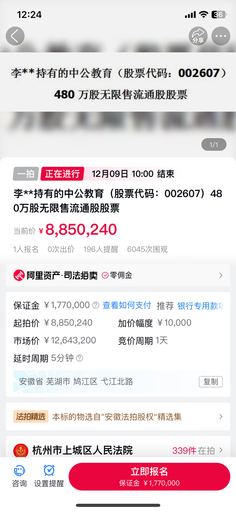 $中公教育(SZ002607)$ 1人报名,0次出价