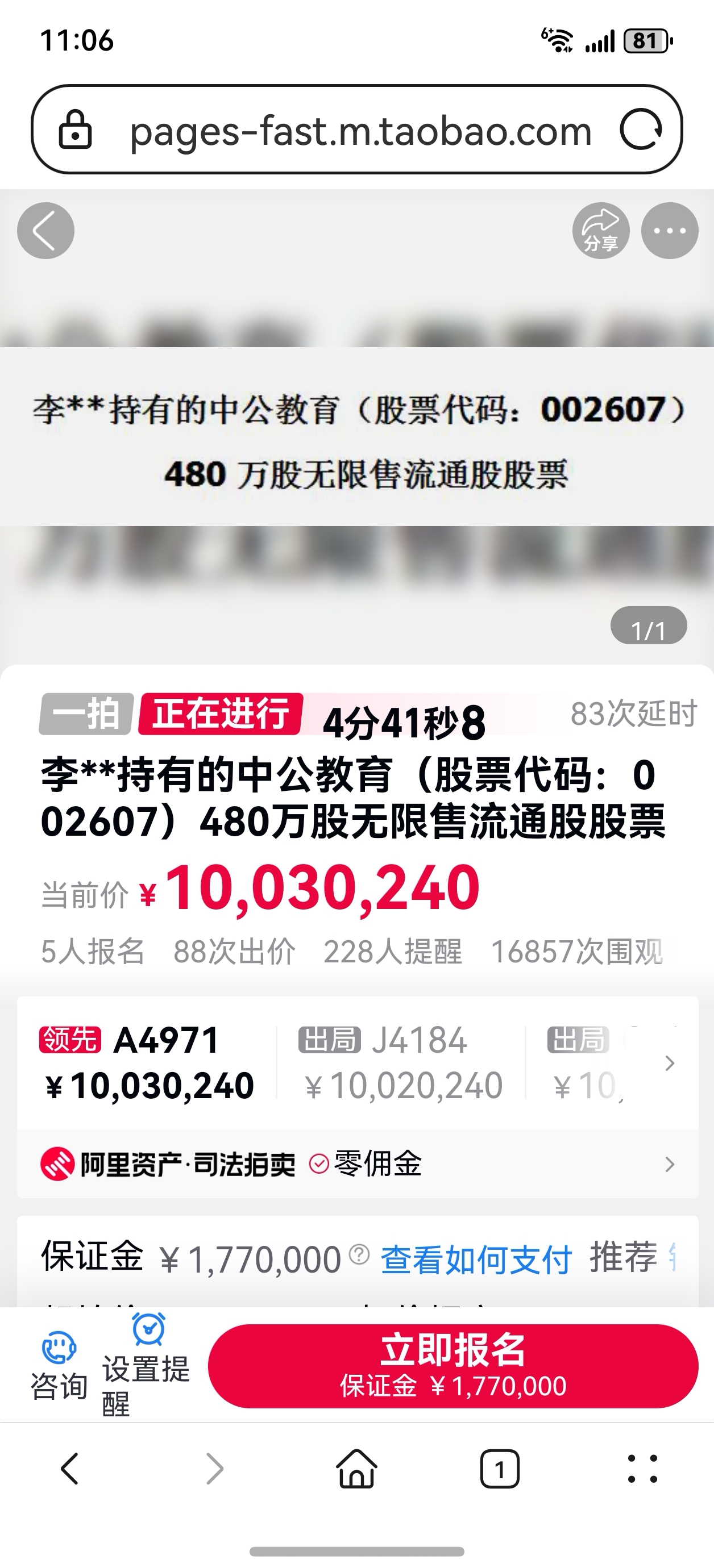 没人忽悠,大家上阿里拍卖搜索。已抢到2.15元了,还在抢
