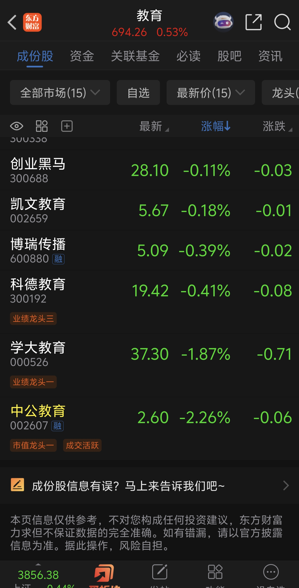 $中公教育(SZ002607)$ 前几天龙头,今天就吊车尾了