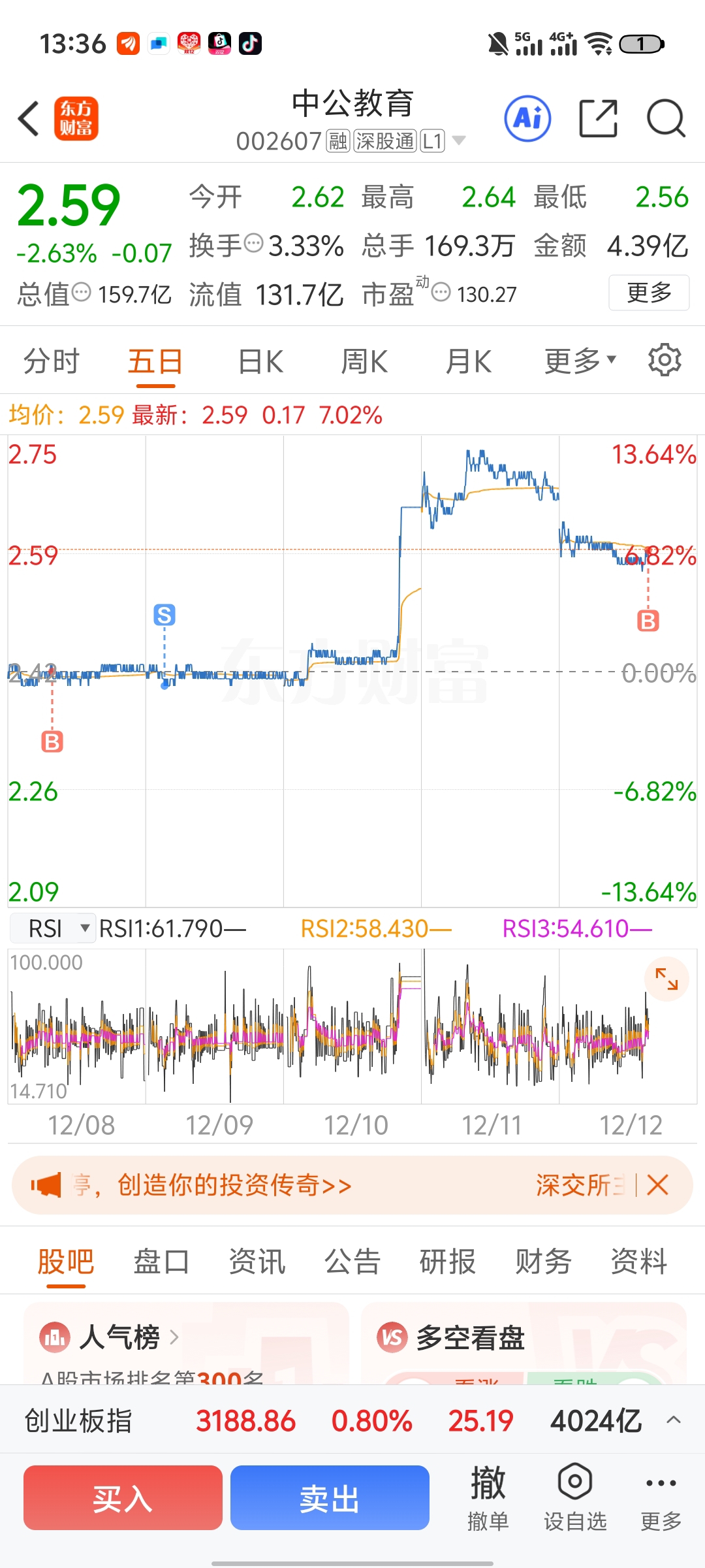 $中公教育(SZ002607)$ 唉 这股炒的心脉受损