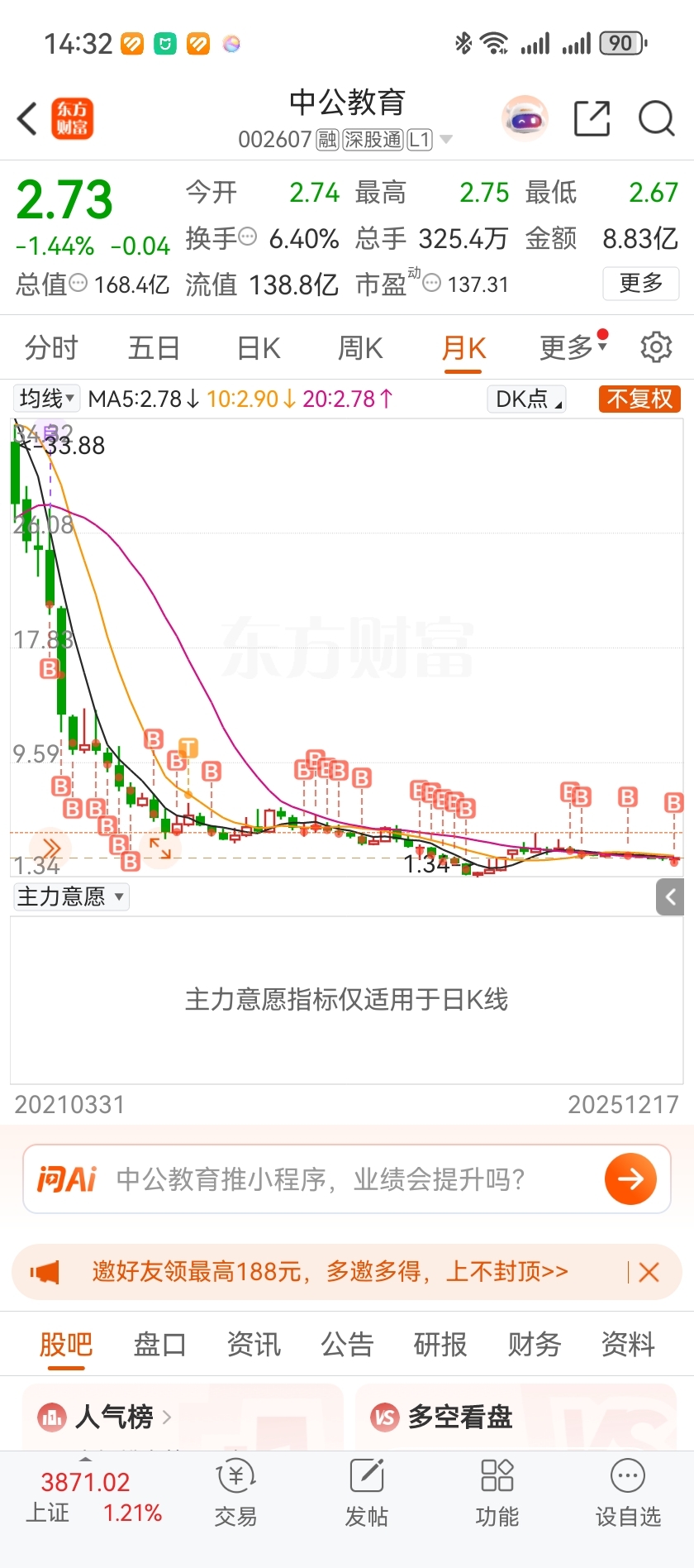$中公教育(SZ002607)$ 来吖,谁怕谁啊