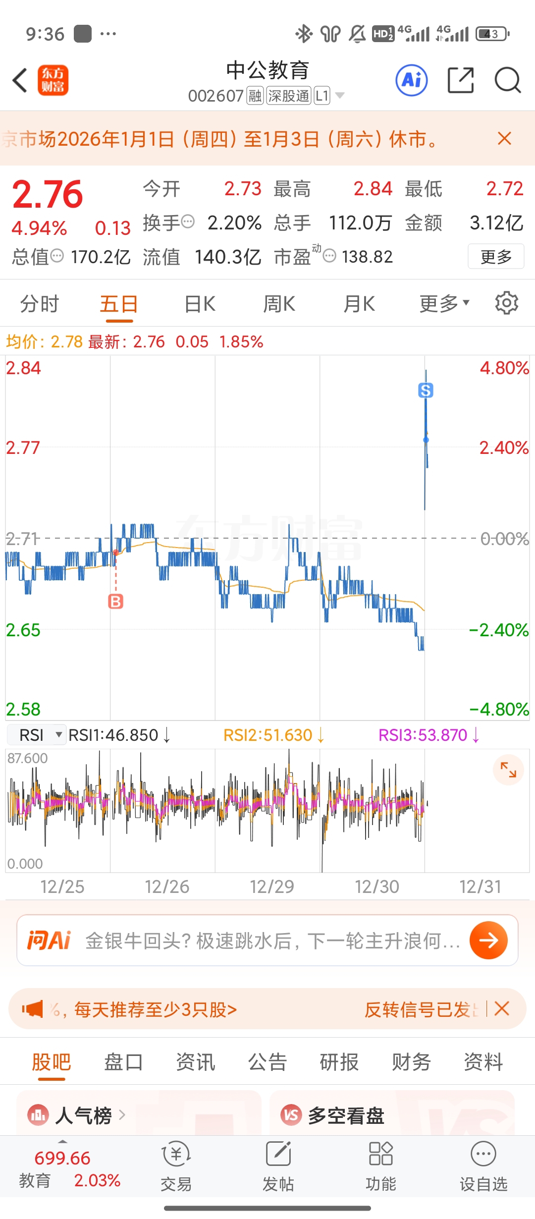$中公教育(SZ002607)$ 冲高就跑,不贪