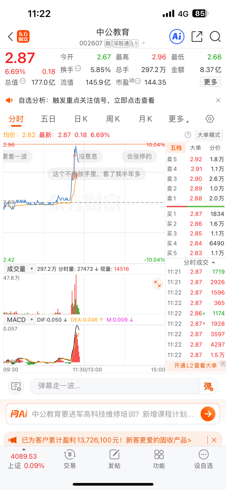 $中公教育(SZ002607)$ 是谁说要涨停的?