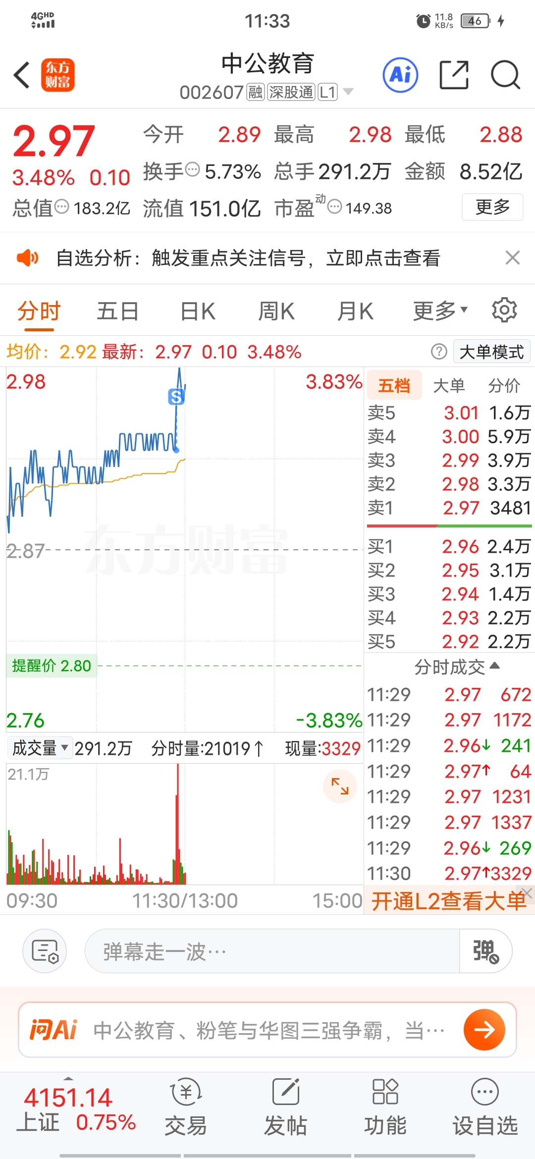 $中公教育(SZ002607)$ 卖飞了
