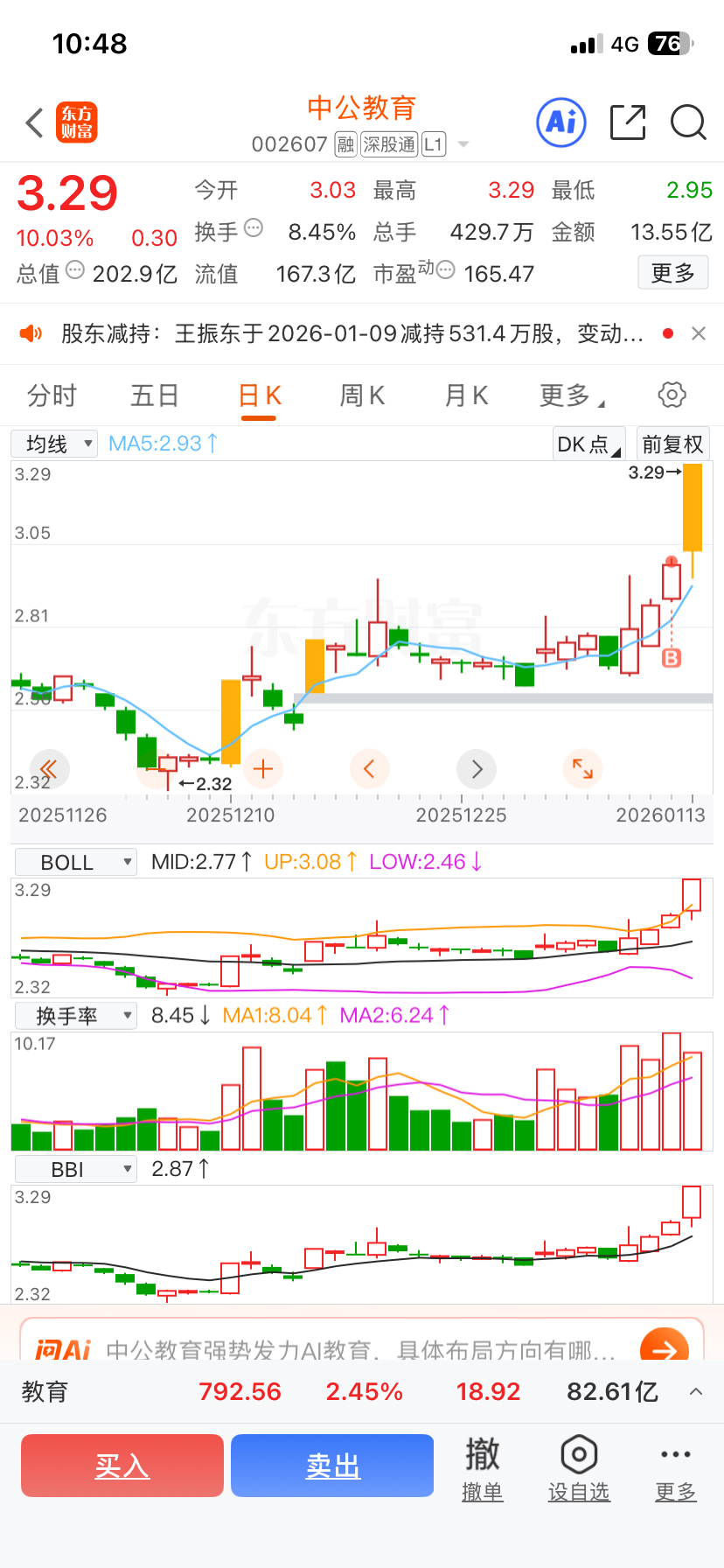 $中公教育(SZ002607)$ 昨天分仓没有子弹,买少了
