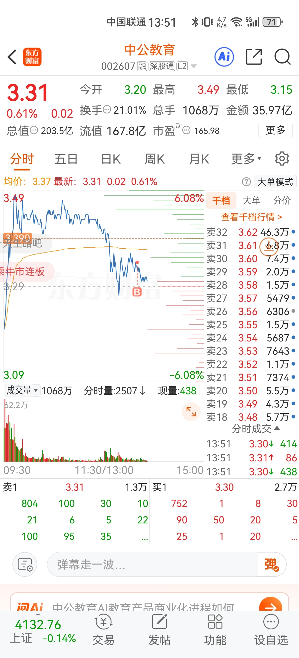 $中公教育(SZ002607)$ 完du子了,主力压单不让涨。