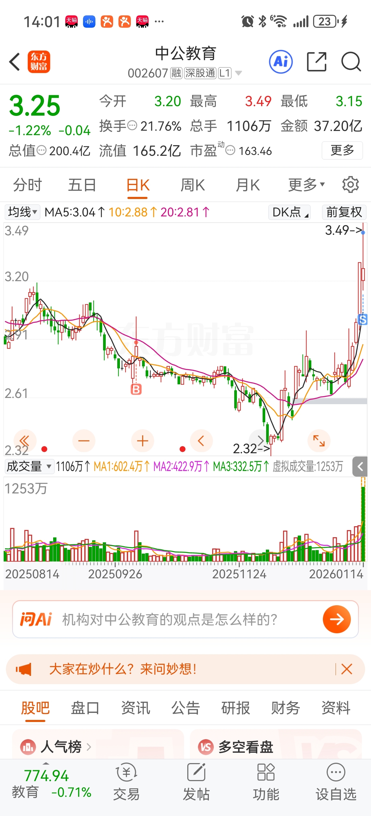 早上梦到中公暴涨到差不多5个点,然后就被闹钟叫醒了,赶紧看盘果然跟梦里一样,然后
