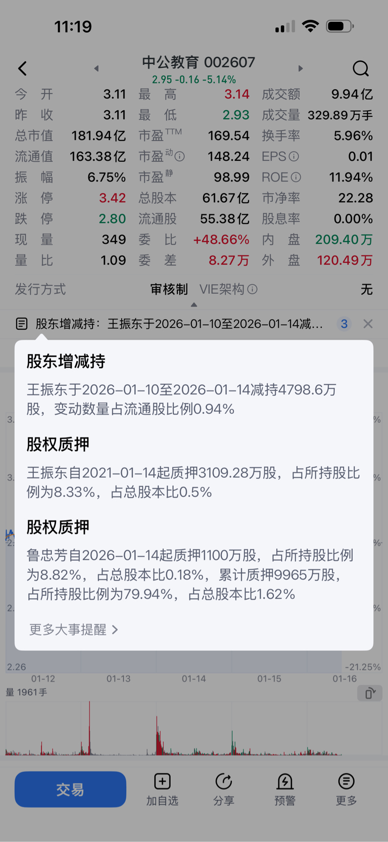 $中公教育(SZ002607)$ 拉涨停这是给王总减持机会呢