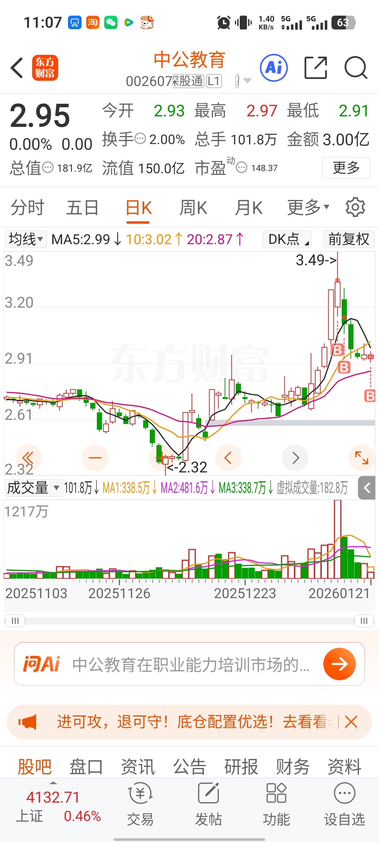 $中公教育(SZ002607)$ 越跌越买