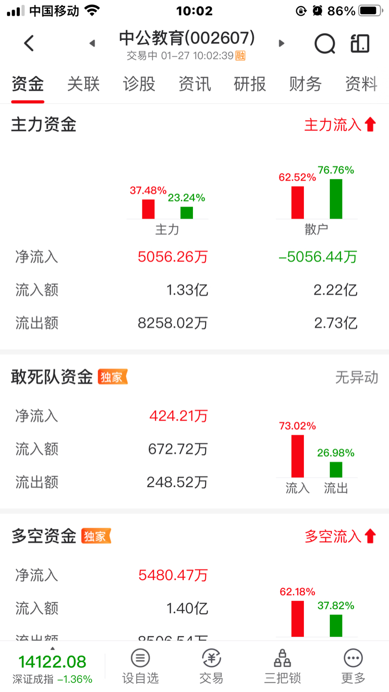 $中公教育(SZ002607)$ 今天的散集体在主力拉高处套现了5000多万