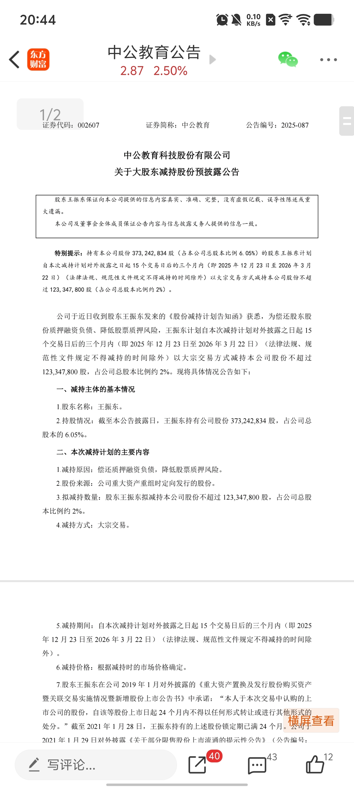 $中公教育(SZ002607)$ 减持没出不会大涨的 静等