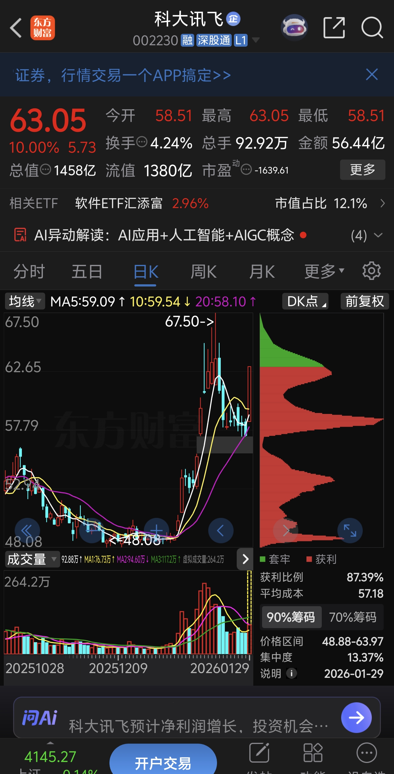 科大讯飞ai应用龙头涨停,带了一把后排的杂毛